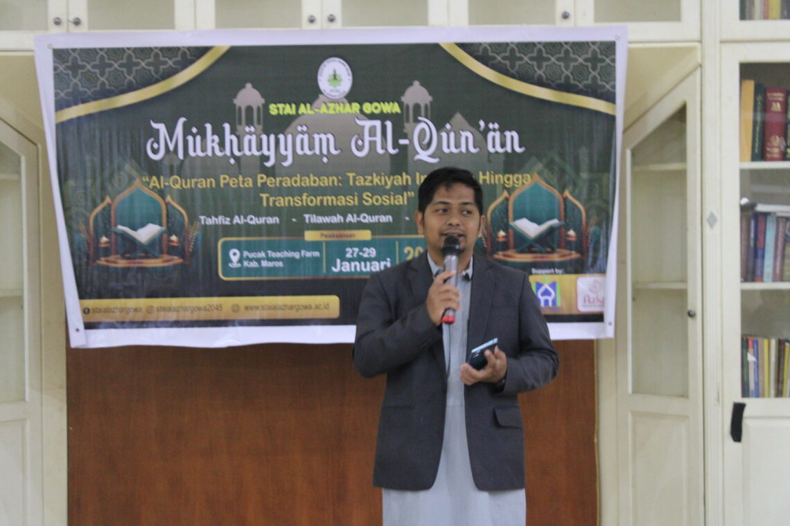 STAI Al-Azhar Gowa kembali menyelenggarakan kegiatan tahunan Mukhayyam Al-Qur’an dengan mengusung tema “Al-Qur’an Peta Peradaban: Tazkiyah Individu hingga Transformasi Sosial”. Kegiatan ini dilaksanakan selama tiga hari, mulai Selasa hingga Kamis, 27–29 Januari 2026, bertempat di Pucak Teaching Farm, Kabupaten Maros.
